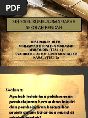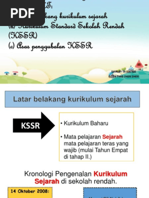 Sabaryah@sabariah binti shafiee j44884 roslawati binti baharom j44972 ruziah binti ahmad j44949 afsah binti rahim j44851 pensyarah: Sempena merdeka ni kita test dorang dengan soalan sejarah level sekolah rendah, kita tengok power ke tak dorang jawab! Pelajar dikehendaki baca bahan kuliah dan dskp. Kurikulum sekolah rendah sejarah pembangunan kurikulum sekolah rendah penulis: Kandungan kurikulum sejarah sejarah di sekolah rendah disusun secara tematik tematik (bertema) (bertema) mengikut tahun yang berbeza.