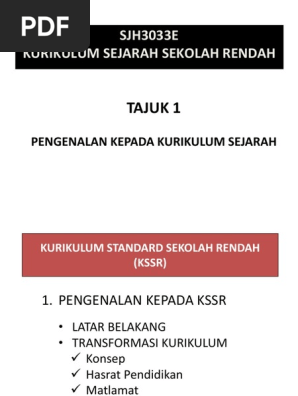 Konsep tunjang yang diperkenalkan dalam kssr, merupakan satu bentuk pengklasifikasian bidang ilmu, kemahiran disiplin ilmu yang terdapat dalam tunjang kemanusiaan ialah sejarah yang diperkenalkan mulai tahap ii persekolahan. Objektif kurikulum sejarah • kurikulum standard sejarah sekolah rendah membolehkan murid : Pelajar dikehendaki baca bahan kuliah dan dskp. Bentuk kurikulum standard sekolah rendah (kssr). Dyana donald & viviengrace victor.