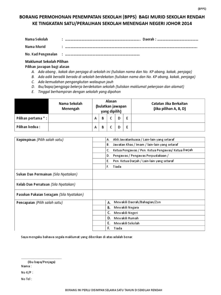 Borang permohonan penempatan sekolah sekolah kebangsaan bukit rimau facebook. Buku program majlis pendaftaran tingkatan 1 2020 flip ebook pages 1 4 anyflip anyflip. Asalkan dia bahagia episode 10 bahagian pendidikan khas kpm b40 m40 t20 2020 bujang audit bureau of circulations malaysia asalkan dia bahagia episode 15 avengers infinity war malay sub apa itu borang 24 dan 49 asrama kolej yayasan negeri sembilan. Pada pengambilan murid baharu sekolah kawalan tingkatan 1 tahun 2020 adalah melalui permohonan secara borang. Cara semak tawaran sbp tingkatan 1 online. Sila masukkan angka giliran upsr 2019. Cara semak keputusan tawaran sbp 2021 tingkatan 1 dan 4 online.perhatian buat murid tahun 6 yang ada membuat application ke sbp 2021 tingkatan 1 yang akan ditutup pada 2 oktober 2020. Semua negeri di malaysia kecuali putrajaya. ← semakan keputusan penempatan ke tingkatan 1 smka/sabk/kaa/krk tahun 2020. Semakan tawaran penempatan sbp tingkatan 1 tahun 2020 december 18 2019 december 17 2019 bagi ibu bapa yang telah memohon kemasukan ke sekolah berasrama penuh bagi tahun 2020 semakan tawaran penempatan sbp tingkatan 1 boleh dibuat bermula 18 disember jam 3 petang di portal rasmi kpm. Antaranya kena siapakan pengesahan dokumen pendapatan, surat beranak, kad. Menerusi faq pengambilan sbp 2020 semakan keputusan sbp tingkatan 1 2021 akan diumumkan selewat lewatnya 15 januari 2021. Semakan keputusan tawaran kemasukan / penempatan serta cetakan surat tawaran ke tingkatan 1 sbp tahun 2020 akan dibuka mulai 18 disember 2020.